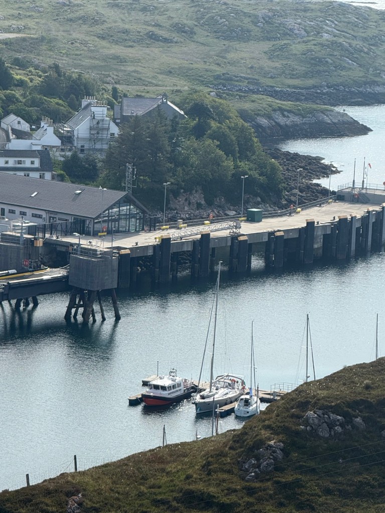 The Atlantic Ocean lies behind us. Tarbert was a portage a millennium ago – a easier path to haul Viking boats than to row/sail them around Harris Island.